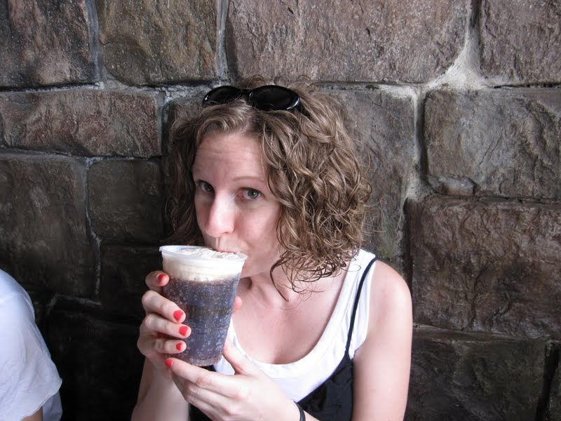 This picture cracks me up.  Jennifer took it while we were standing in line for the Harry Potter ride.  A wonderful experience through the world of Harry Pottery (some virtual & some through the castle).  It was obviously hot outside (FL in the summer) but they had misters and fans...a little piece of heaven.